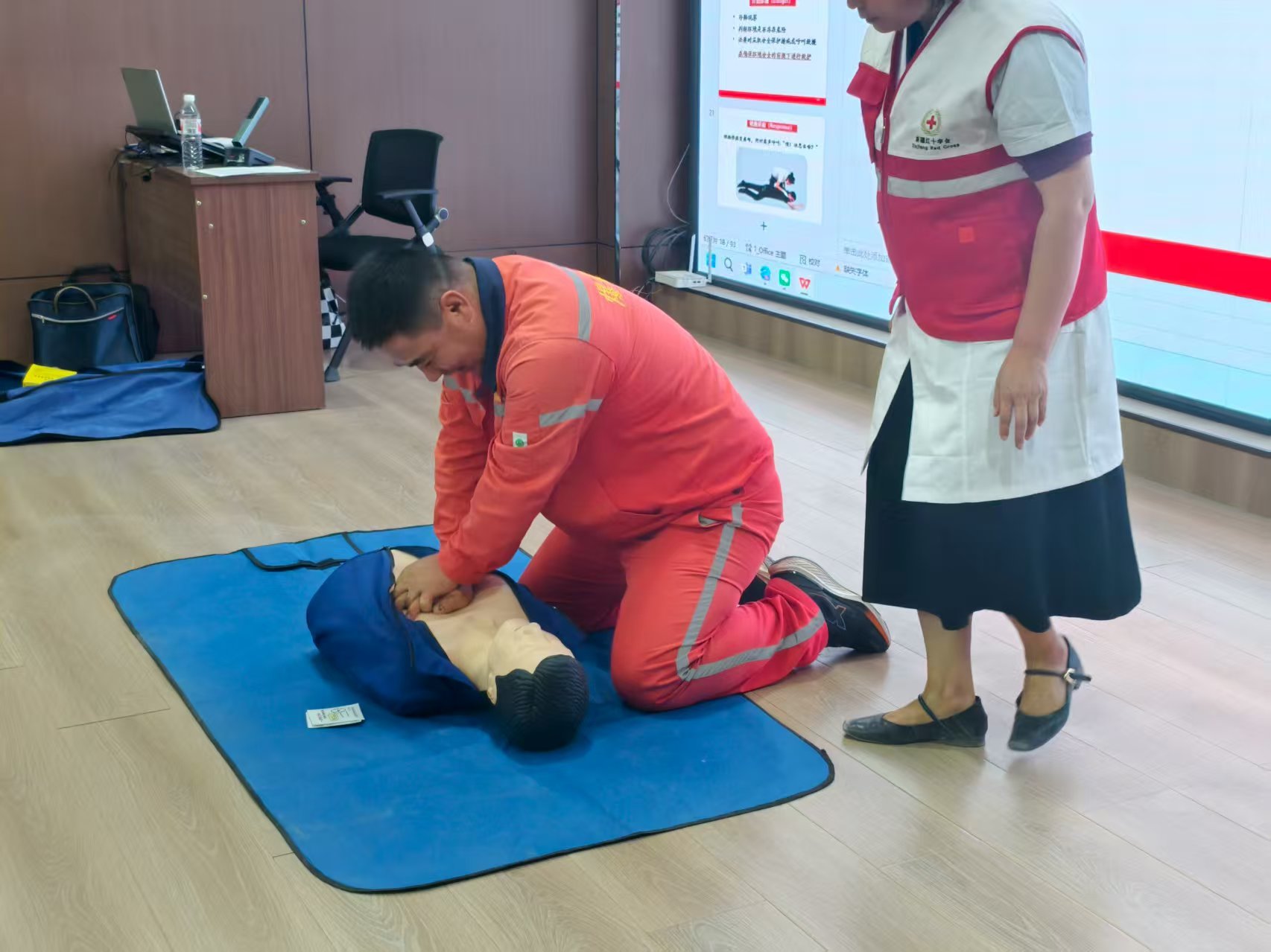 此次培训由新疆江阳公司淖毛湖项目部联合县红十字会共同举办,旨在让员工掌握心肺复苏(CPR)与AED使用的基本技能,应对突发心脏骤停等紧急情况。培训现场,李医生先用动画短片展示了心脏骤停的危害——当心脏骤停发生后,每延迟1分钟抢救,生存率就会下降7%至10%,而“黄金四分钟”内正确使用AED并配合心肺复苏,能将生存率提升至50%以上。