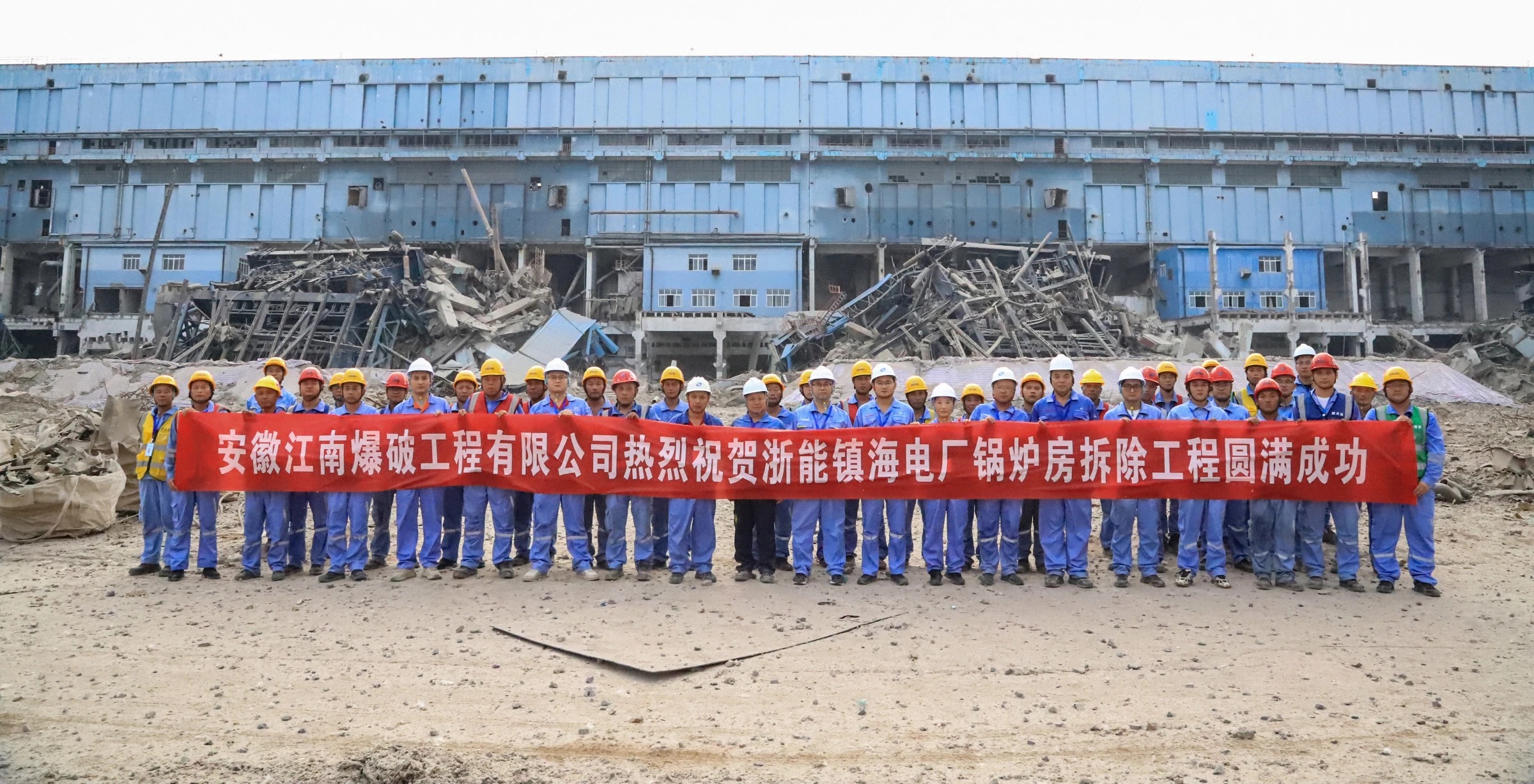 近日,江南化工江南爆破公司安全高效完成浙能镇海电厂原址4台215MW燃煤机组锅炉房爆破拆除任务。该爆破项目单台锅炉高度约62.5米,单体工程规模达到A级拆除爆破标准,施工要求和技术难度极高。