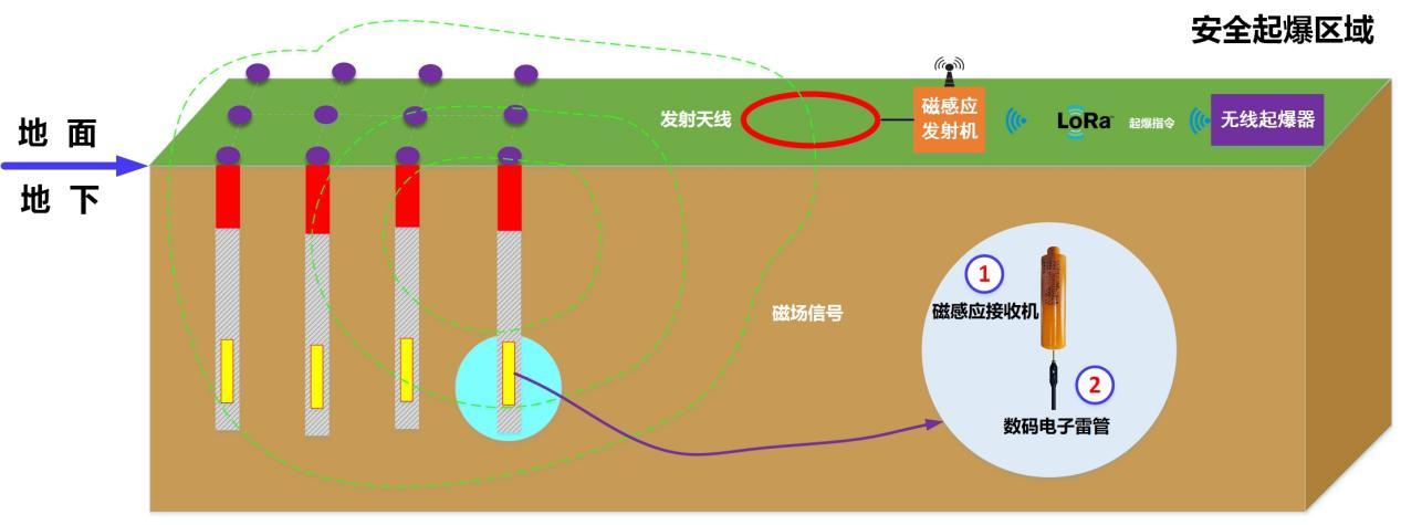 该系统攻克了起爆指令百米透地传输的关键技术难题,成功穿透“空气-煤岩-炸药-水”等复杂介质,起爆炮孔内数码电子雷管。