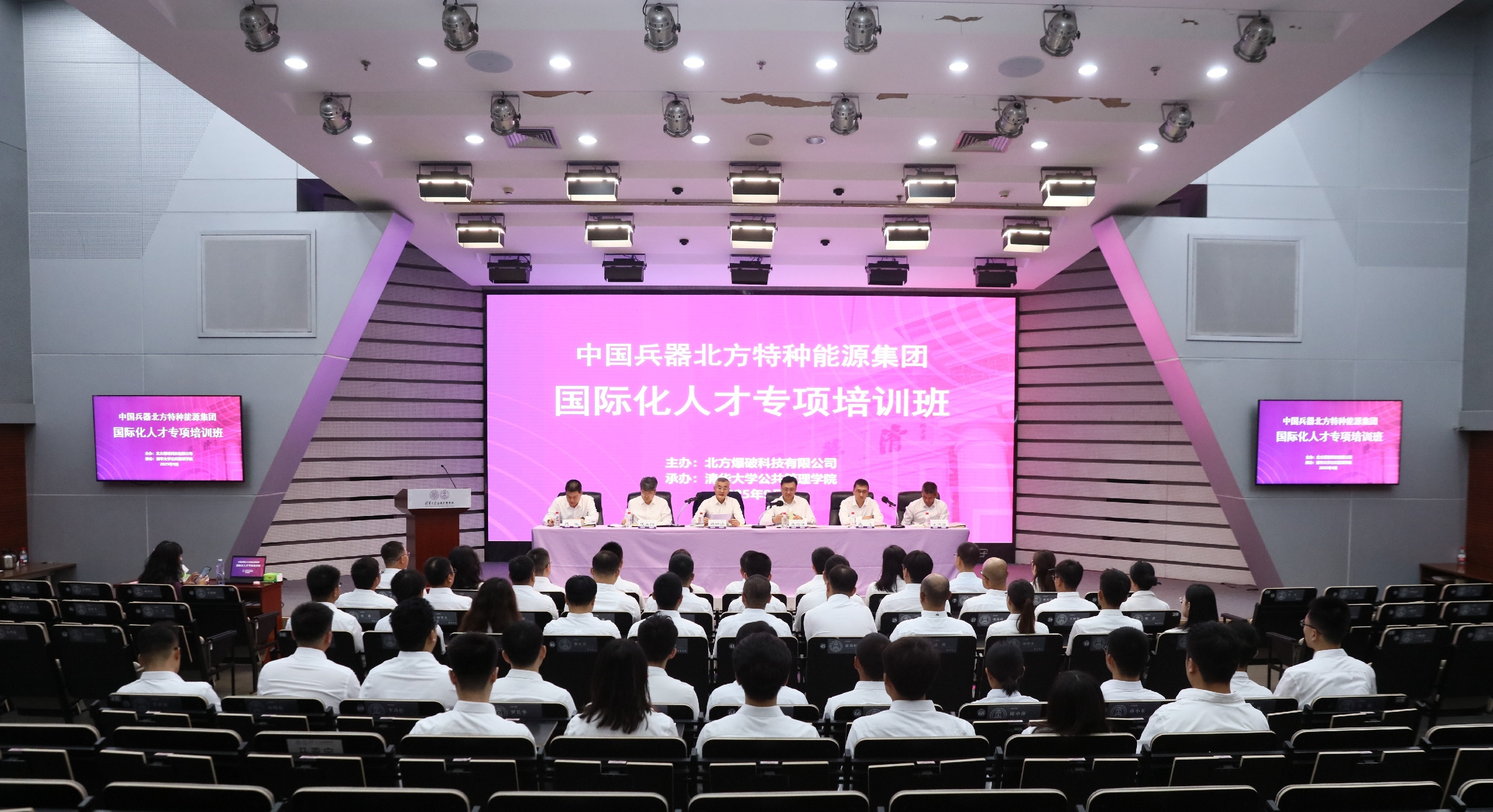 9月24日,特能集团国际化人才专项培训班开班仪式在清华大学公共管理学院举行。特能集团党委书记、董事长杨世泽出席开班仪式并做动员讲话。江南化工总裁、党委副书记代五四主持仪式。清华大学公共管理学院院长朱旭峰致辞。特能集团副总经理王飞参加开班仪式。本次培训聚焦特能集团国际化发展战略需求,旨在培养适应兵器民爆国际化发展的高素质人才,为特能集团高质量发展注入强劲动力,来自各个战线的41名业务骨干参加培训。